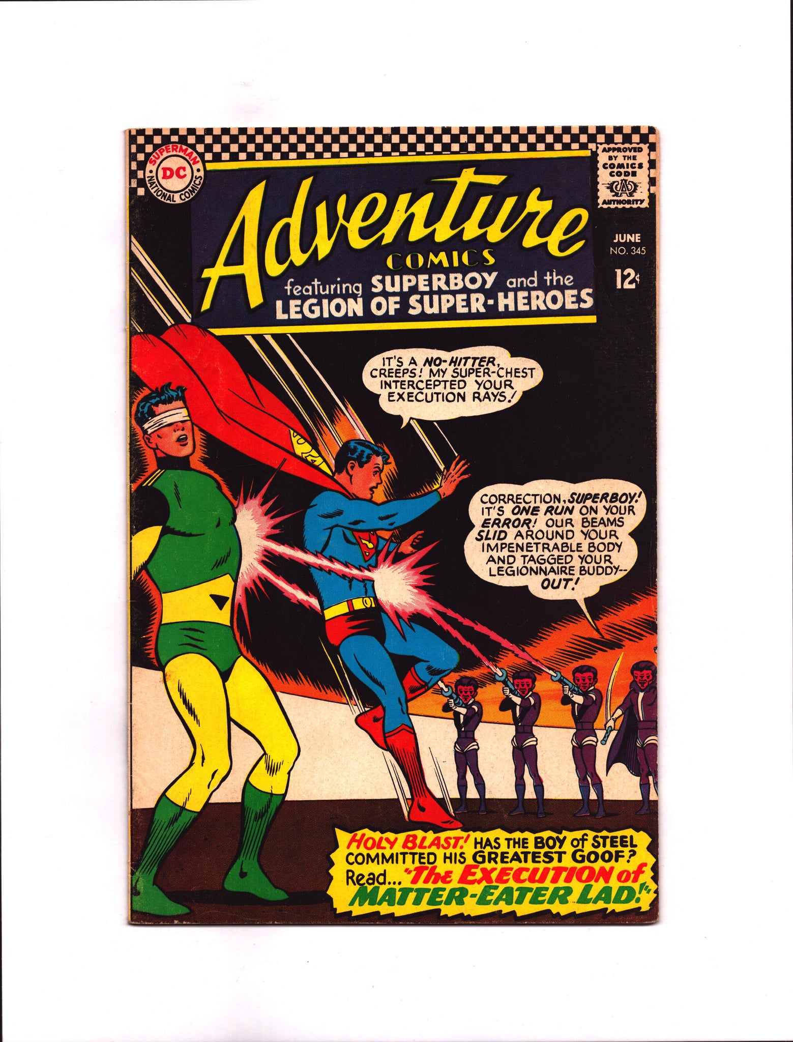 Small water spot stain on Matter-Eater Lad's chest on front cover