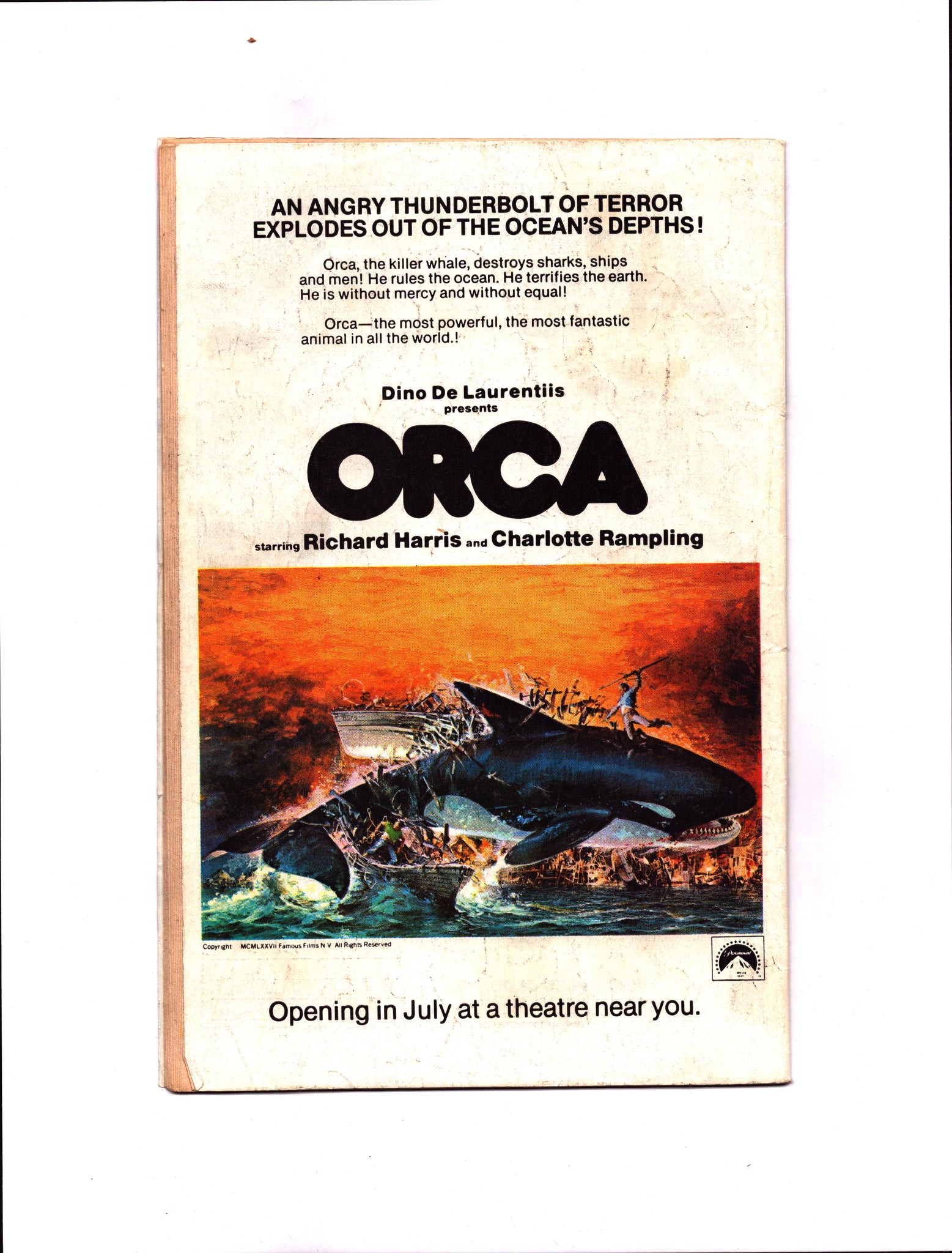 Significant accumulation of handling defects present on covers and through-out book (including center pages being detached from top staple and spine roll)