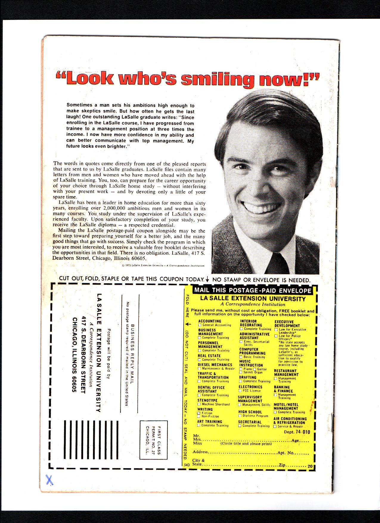 "X" marked on bottom left hand corner of back cover in blue marker