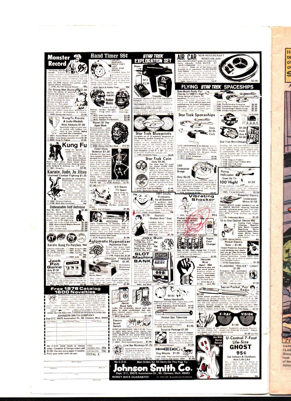 Red pen used on the inside of the front cover (circular scribbles & eyes and face of cartoon characters colored in) as well as on the first page of the issue (Daredevil's face and body marked, "Daredevil!" is underlined, "HISSELF" is written in one of the word bubbles and jewelry store thief is scribbled on) and second page of the issue (small drawing at the top of the page).